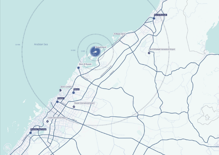 Sobha Siniya Island offers a rare balance between serene island living and seamless urban accessibility. Nestled in Umm Al Quwain, it combines natural beauty, world-class amenities, and residential exclusivity. Despite its tranquil setting, it remains well connected—at 30 minutes from Dubai, 30 minutes from Sharjah, and just minutes from nearby islands and hubs—ensuring that city life and essential services are always within reach.